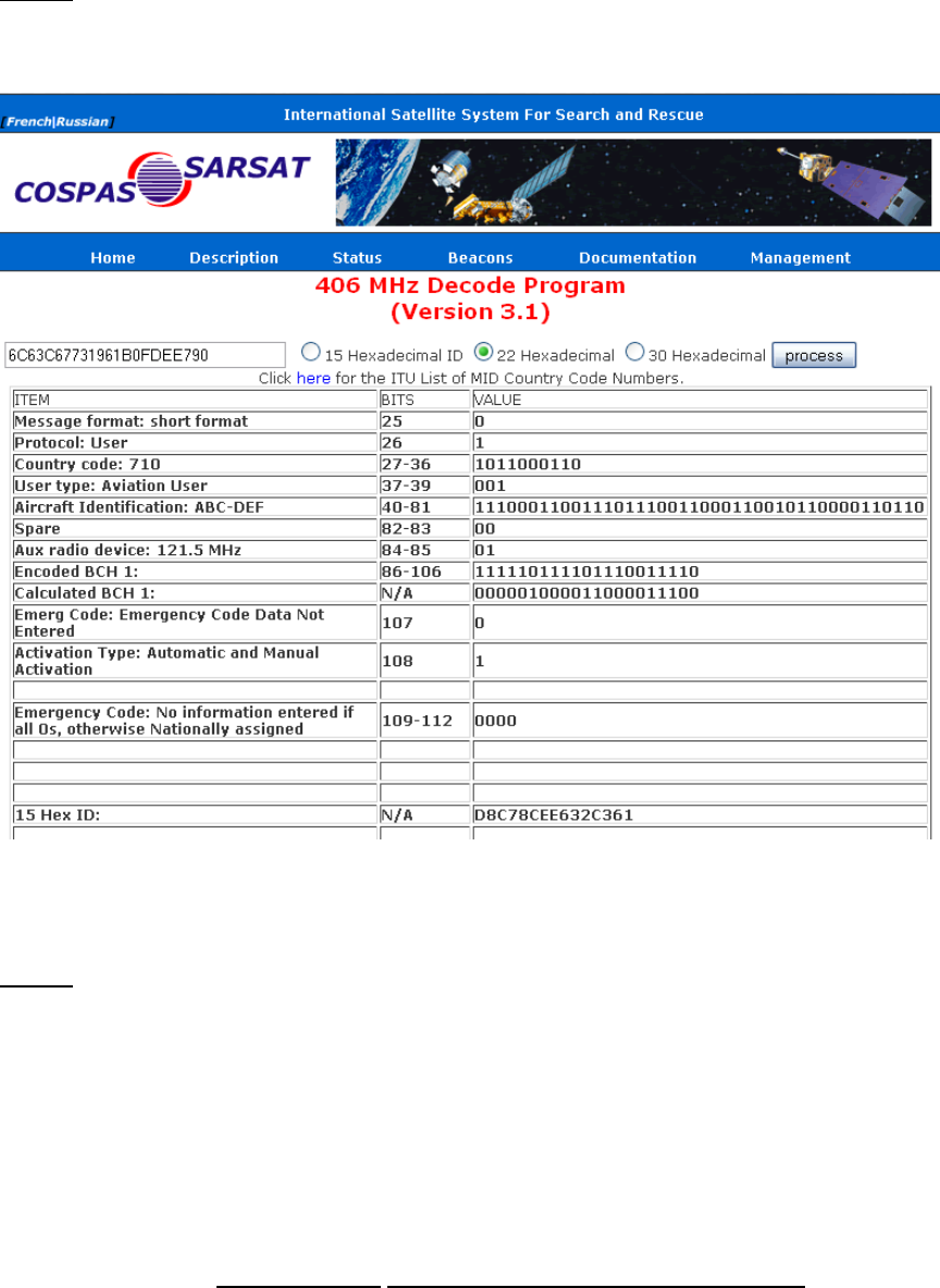 Input the 22-digit hex code into the 406 MHz Decode Program provided. See below: