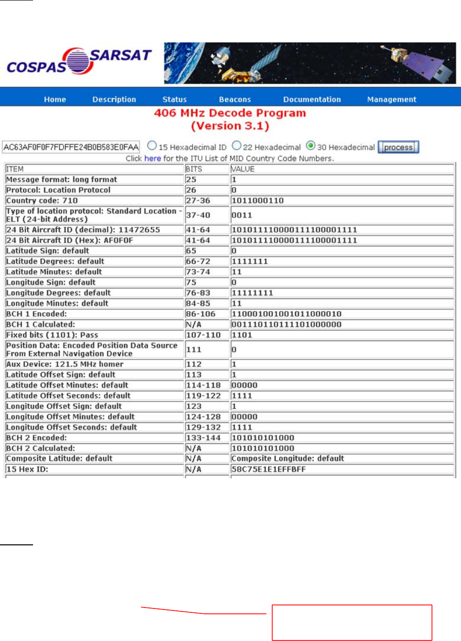 Input the 30-digit hex code into the 406 MHz Decode Program provided. See below: